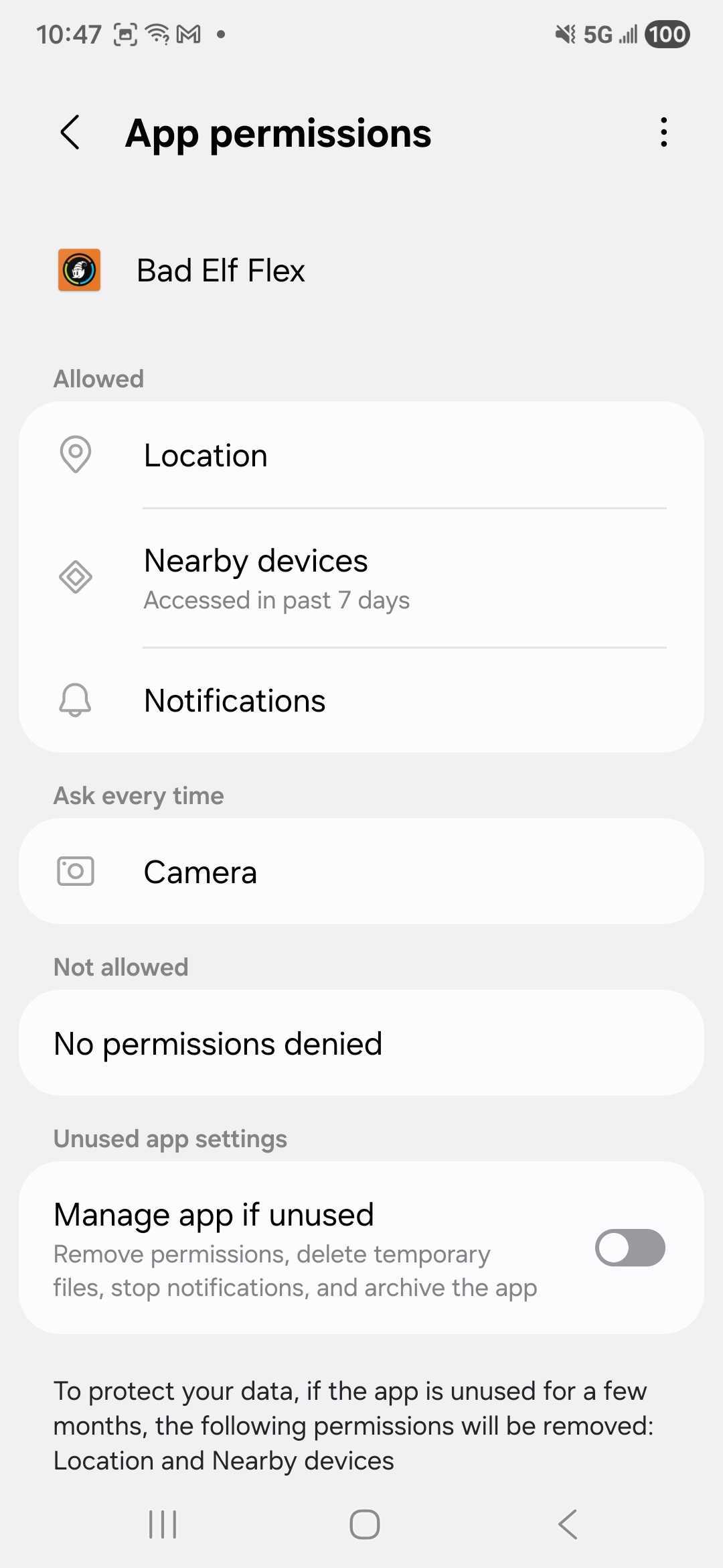 9. Verify Location, Nearby devices, and Notifications permissions are allowed.
