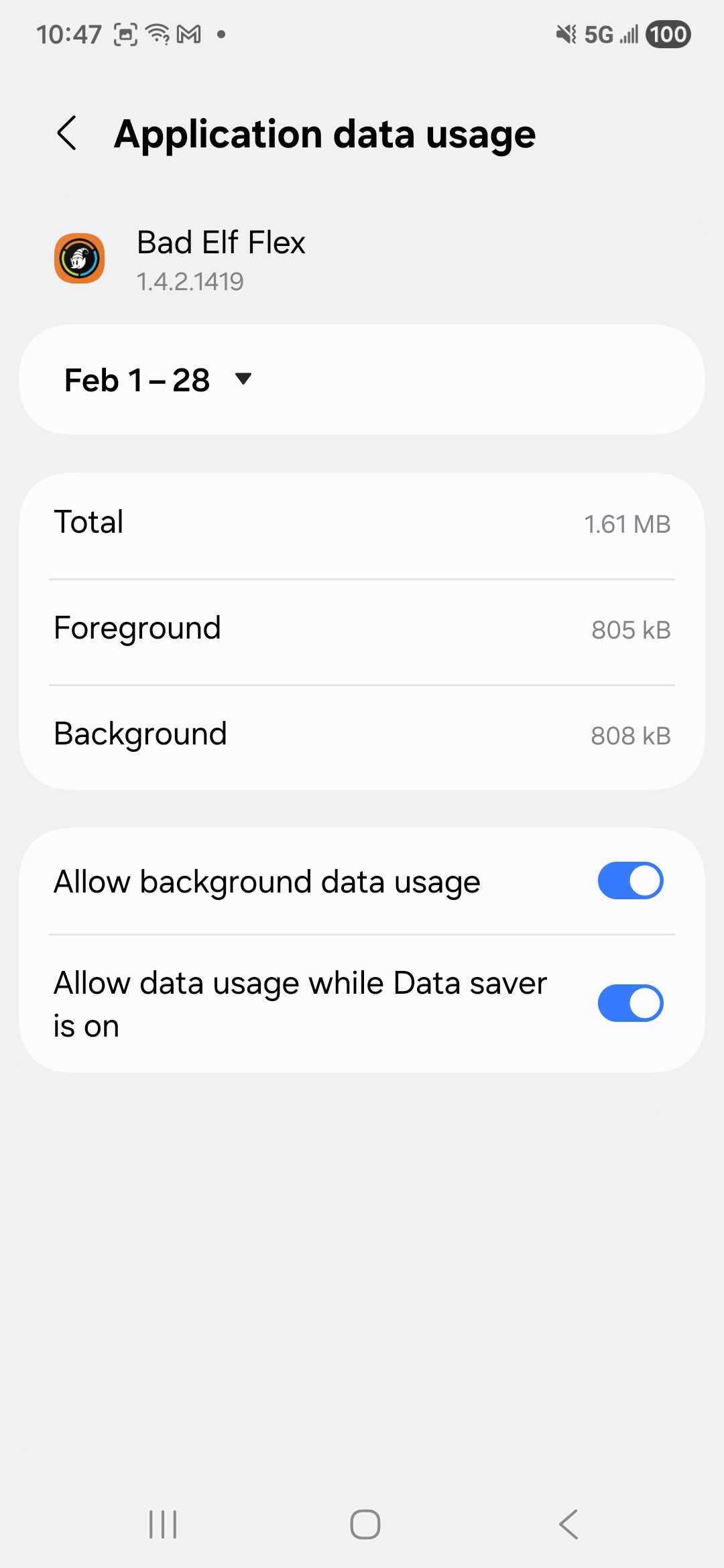 A: Yes. If Data Saver is on and the Bad Elf Flex app isn't granted an exception, the app may be blocked from receiving the NTRIP corrections needed for a centimeter-level fix.