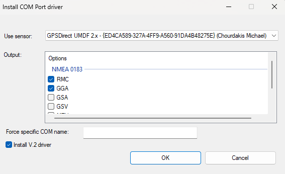 - Ensure the “User Sensor” selected is GPSDirect
