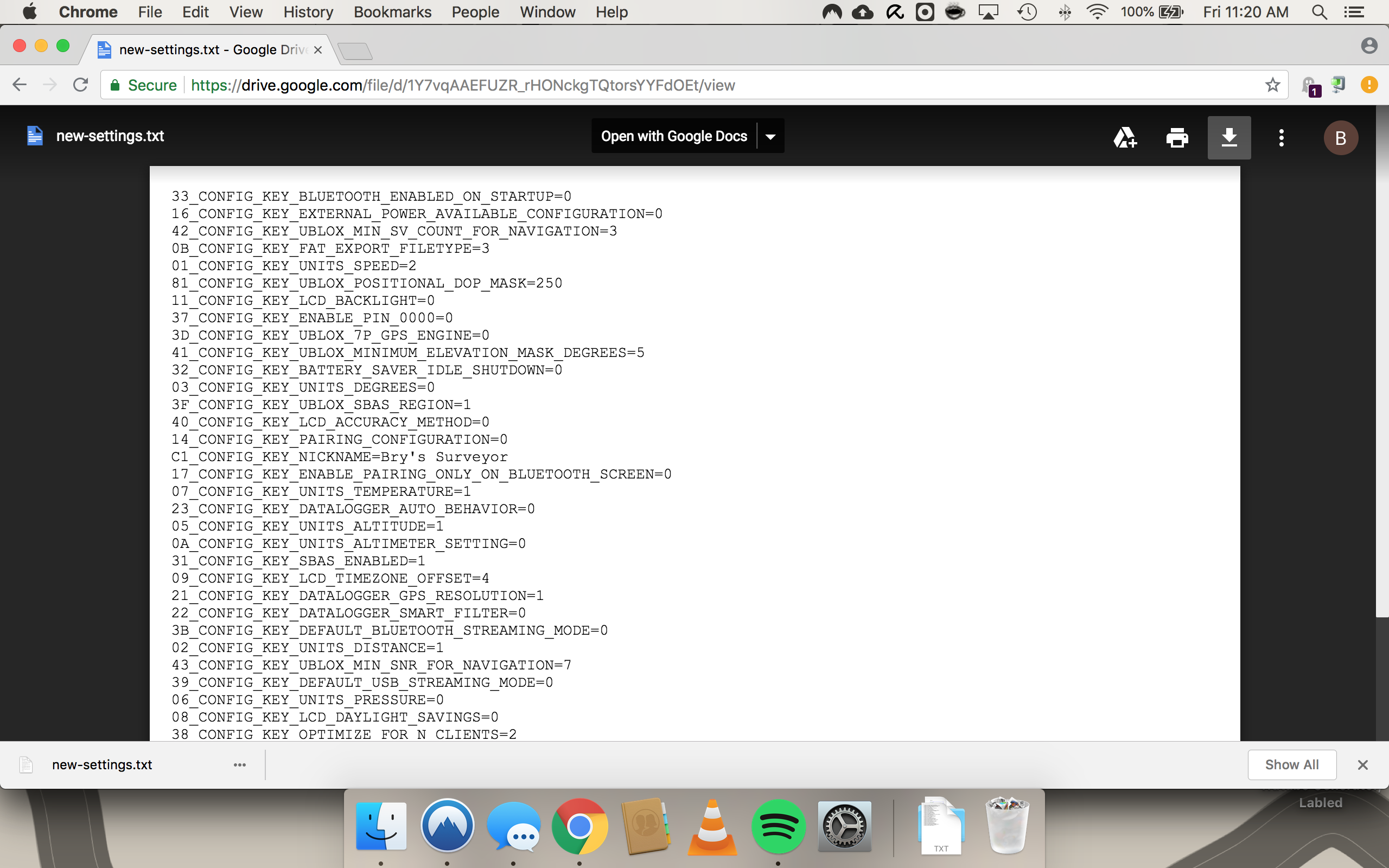 Enter your Elf's file system. Select, and open the current-settings.txt file. If you have done this before, you will see a